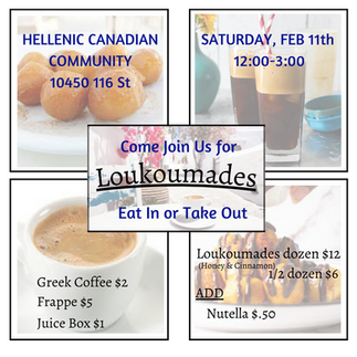 The Hellenic-Canadian Community of Edmonton & Region along with the Hellenic Heritage Language School will be hosting a Loukoumades and Coffee Day on Saturday, February 11th. Come enjoy Greek coffee and Loukoumades in support of our heritage language school.